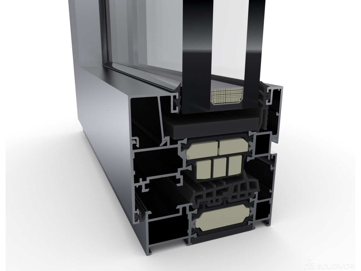El diseño del ALG 83 Passive House destaca por su estética minimalista, con un marco y una hoja de ventana que reducen al mínimo el impacto visual del aluminio. Este enfoque responde a las tendencias actuales del mercado, donde se privilegia la amplitud visual, la luminosidad y la integración armónica con el entorno arquitectónico. Su sistema practicable de tres cámaras con Rotura de Puente Térmico (RPT), en conjunto con espumas especiales en marco y hoja, garantiza un alto nivel de aislamiento térmico. Además, incorpora poliamidas de baja conductividad Low Lambda, optimizando así su rendimiento energético.