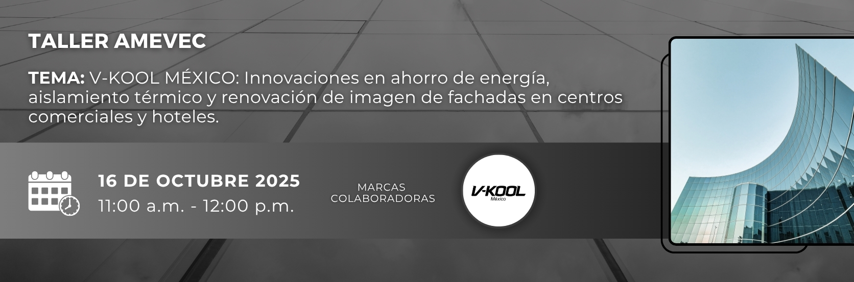 Esta conferencia presentará proyectos innovadores de fachadas de vidrio aislante en centros comerciales, hoteles y cadenas de tiendas, utilizando productos V-KOOL y LLUMAR en México e internacionalmente. Se logran ahorros energéticos superiores al 28% con un retorno de la inversión en menos de 30 meses, todo gracias a la tecnología de los productos V-KOOL.